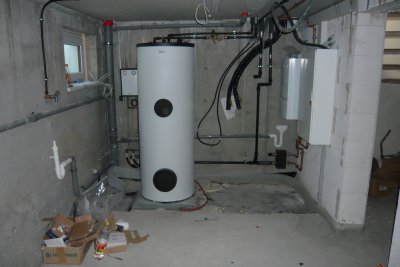 Was ist die Woche passiert - Die Heizung und der Wasserspeicher mit der Solarsteuerung wurden angefangen im Keller zu montieren, das sollte nächste Woche abgeschlossen werden (sieht kompliziert aus, mal sehen was es da an Knöpfchen gibt zum spielen) und dann geht die Heizung an den Start um das Funktionsheizen für den Estrich zu erledigen. Der Estrich im Keller liegt auch fast ... es fehlen weiter die 4 qm im Bereich Heizung, es müssen extra Dämmplaten bestellt werden, das ganze stört nicht wirklich, der Bereich wird sowieso erst im Dezember fertig gemacht.