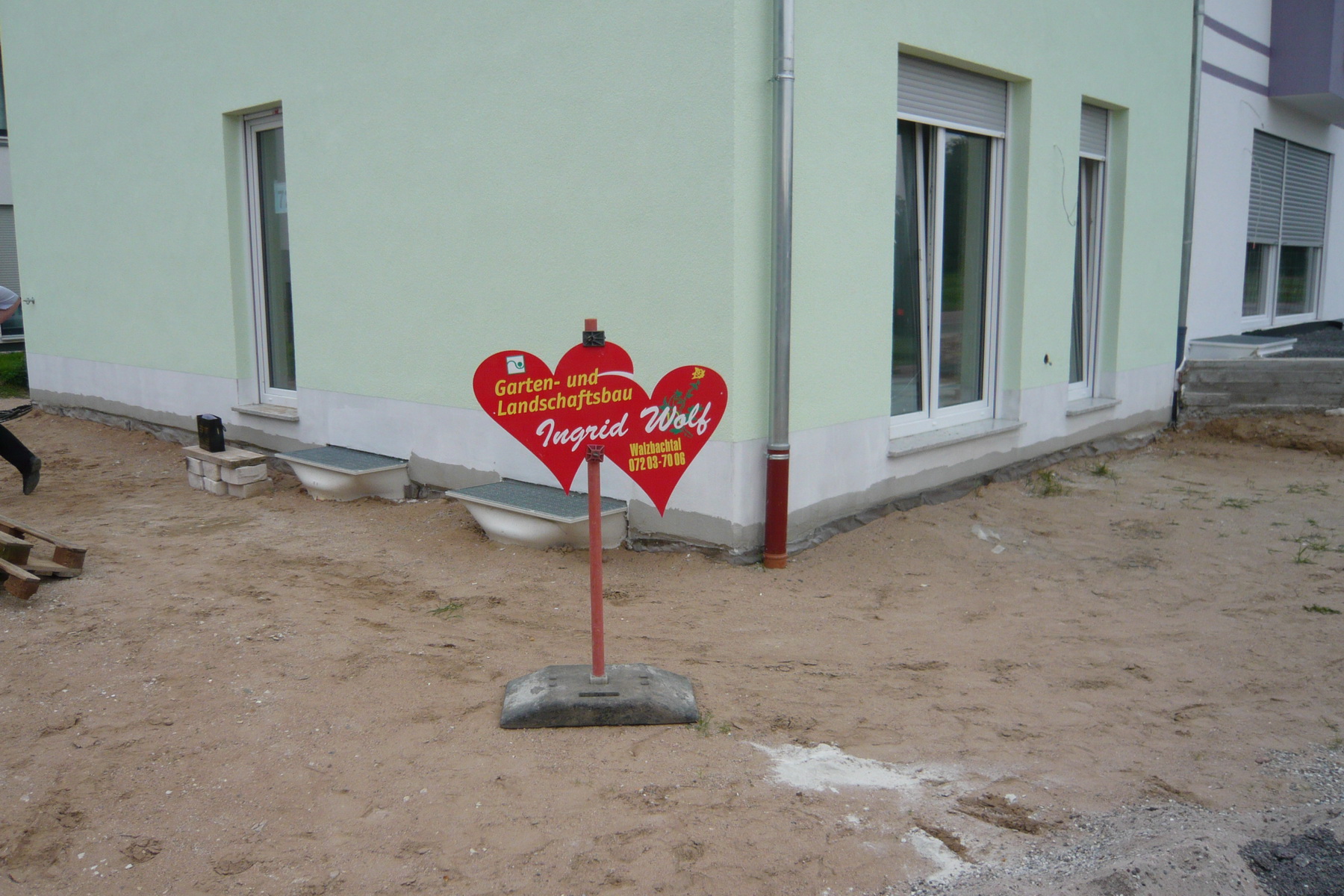 Wir haben heute das Grundstück aufgeräumt und vor allem die genaue Lage der Versickerunggrube angezeichnet, denn das wird nächste Woche gebraucht. Der Gartenbauer macht uns nämlich unsere Einfahrt und den Zugang zum Haus. Das startet dann am Montag.