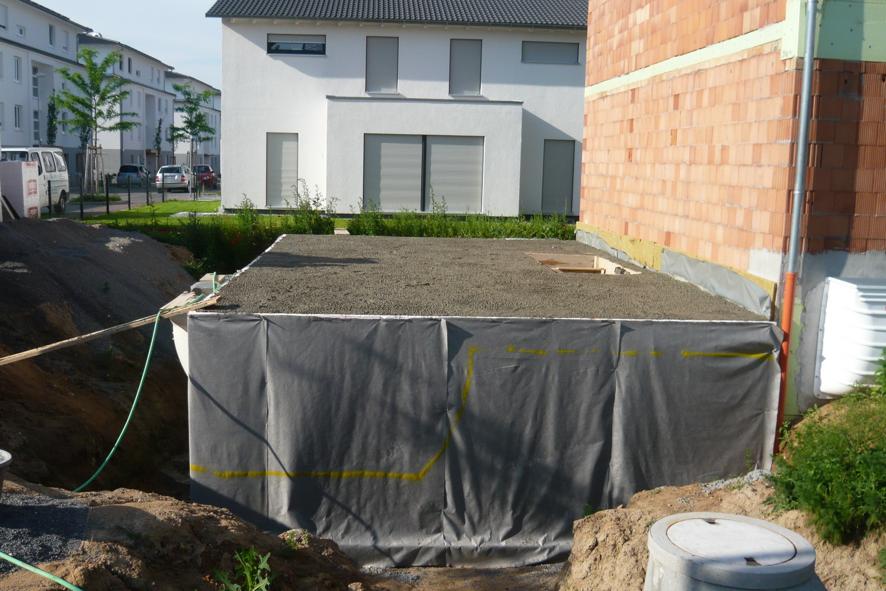 - Versickerunsgmulde (so schön getarnt das ich Sie hoffentlich noch beim Garten anlegen finde) mit Regenrohr am Haus